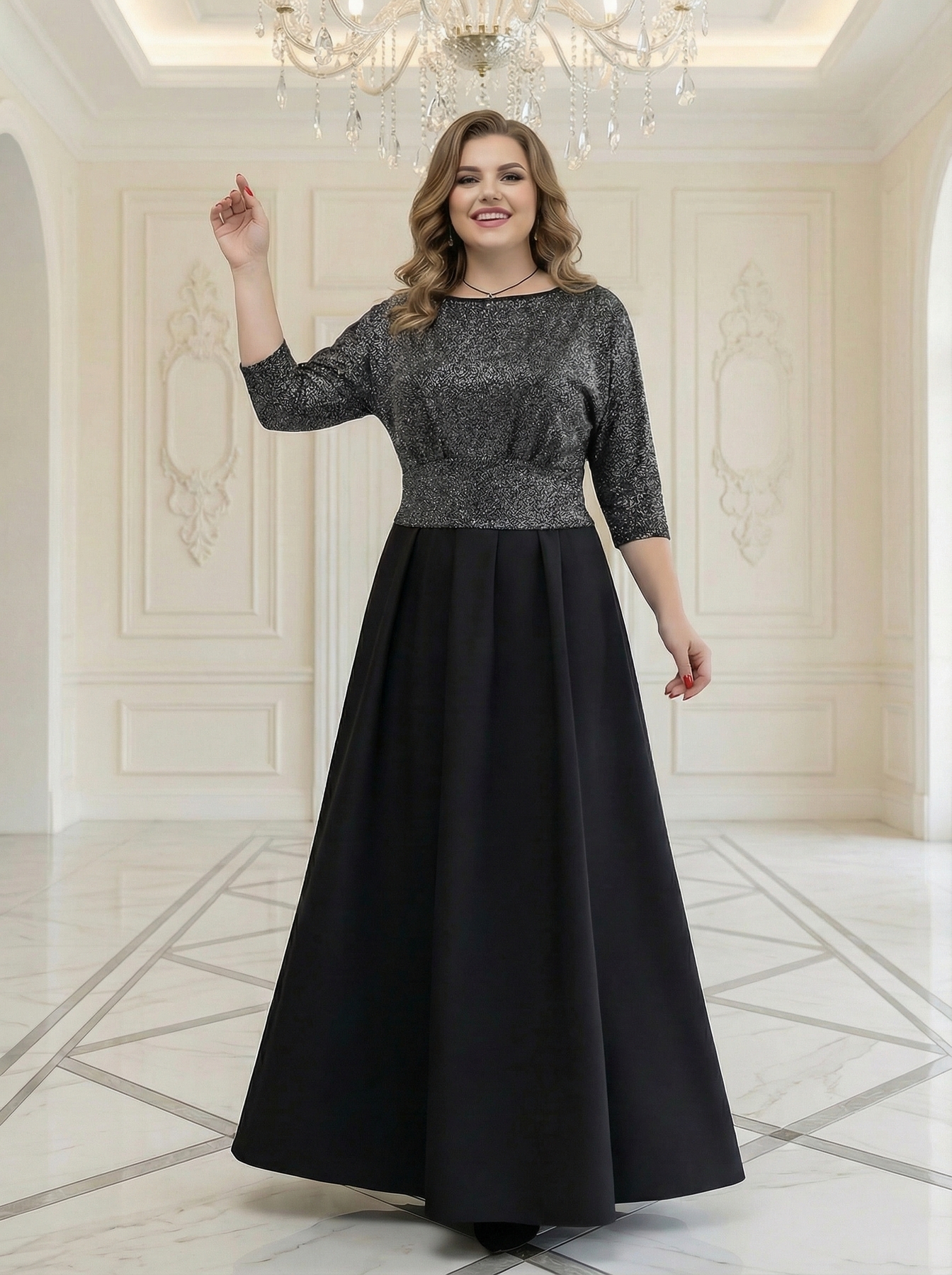 Длинное вечернее платье с люрексом легко сочетать с каблуками, клатчем и аксессуарами. Универсальный крой и качественные материалы помогают получить превосходный внешний вид. Платье женское вечернее большого размера станет альтернативным выбором для женщин, которые хотят выглядеть эффектно и быть уверены в себе.