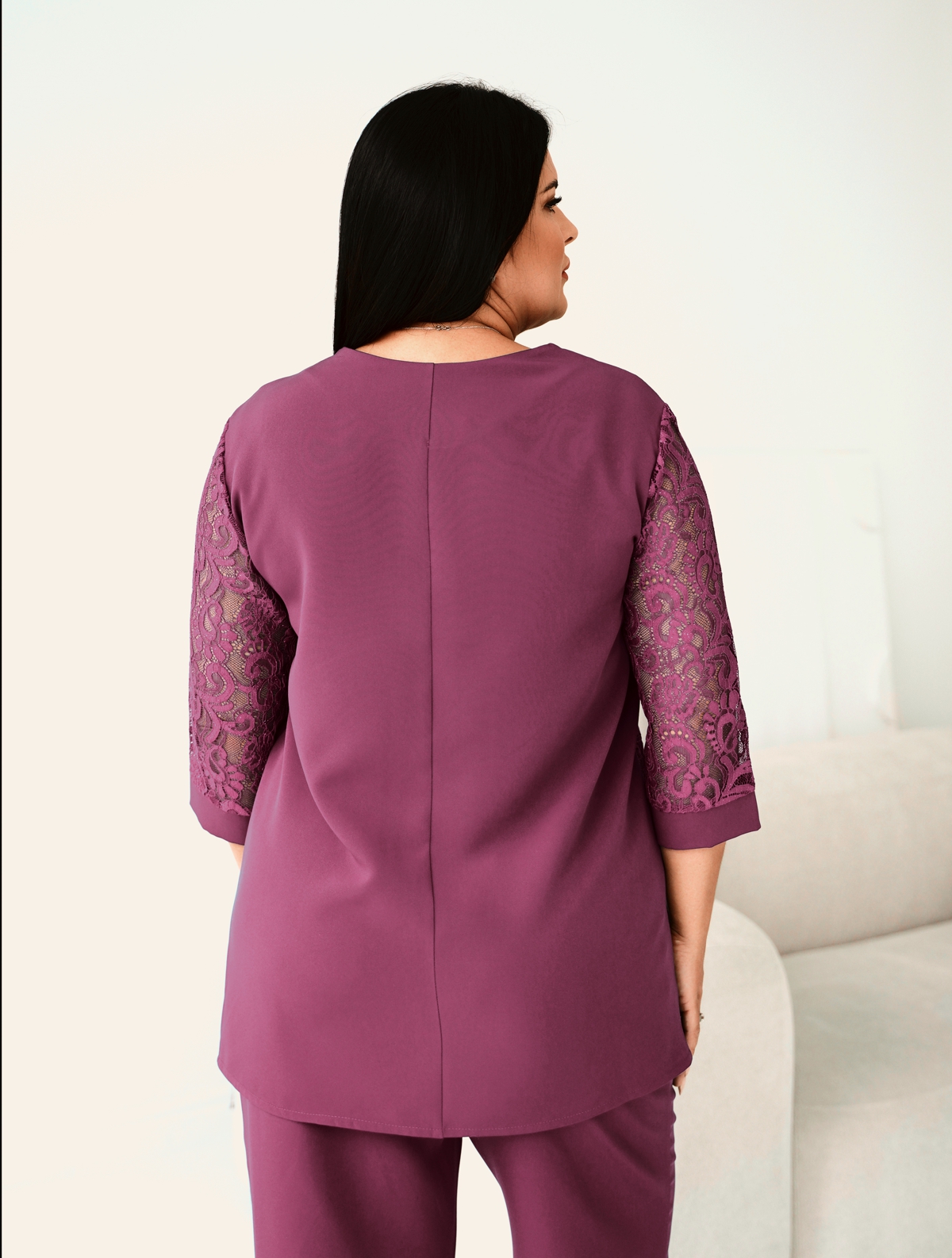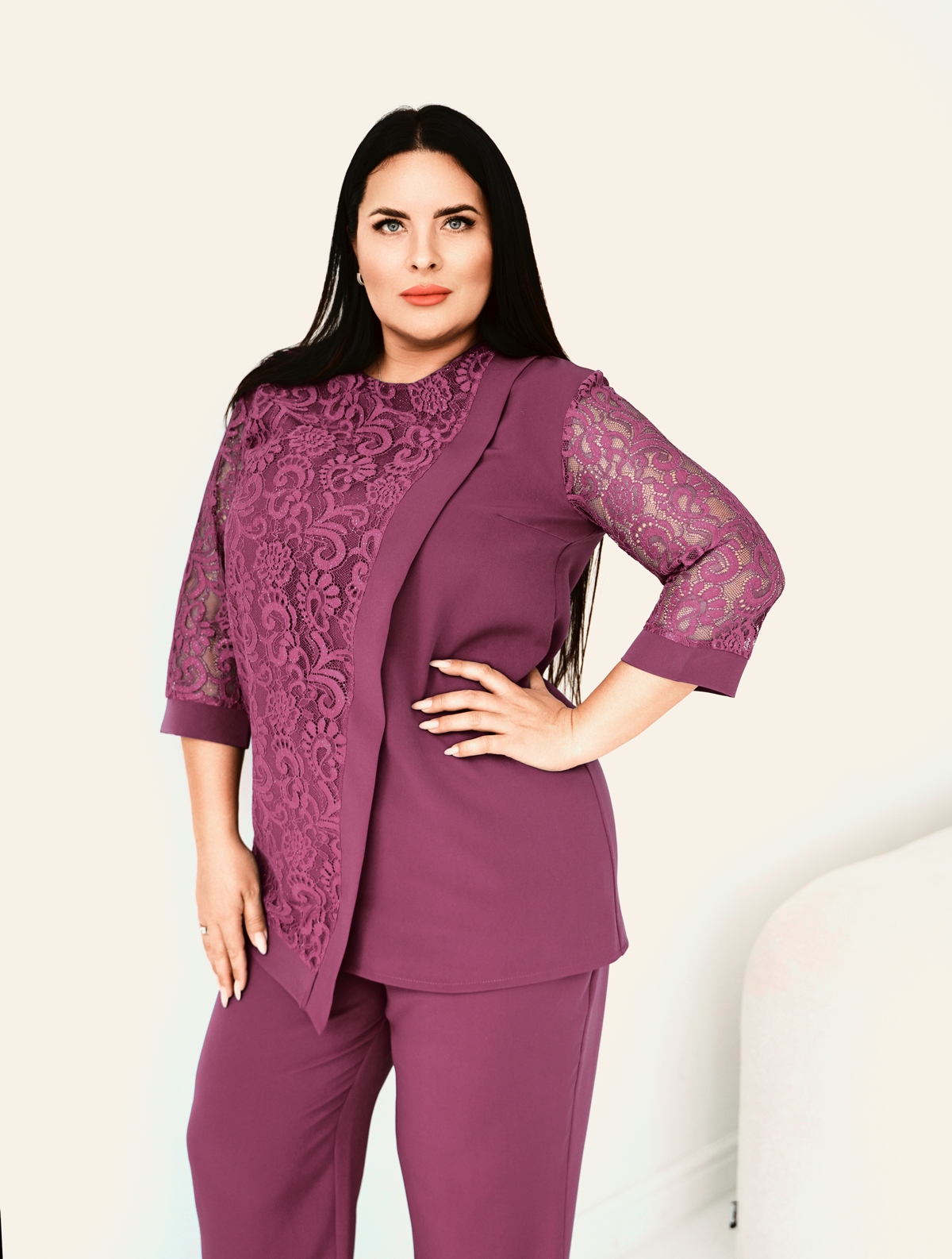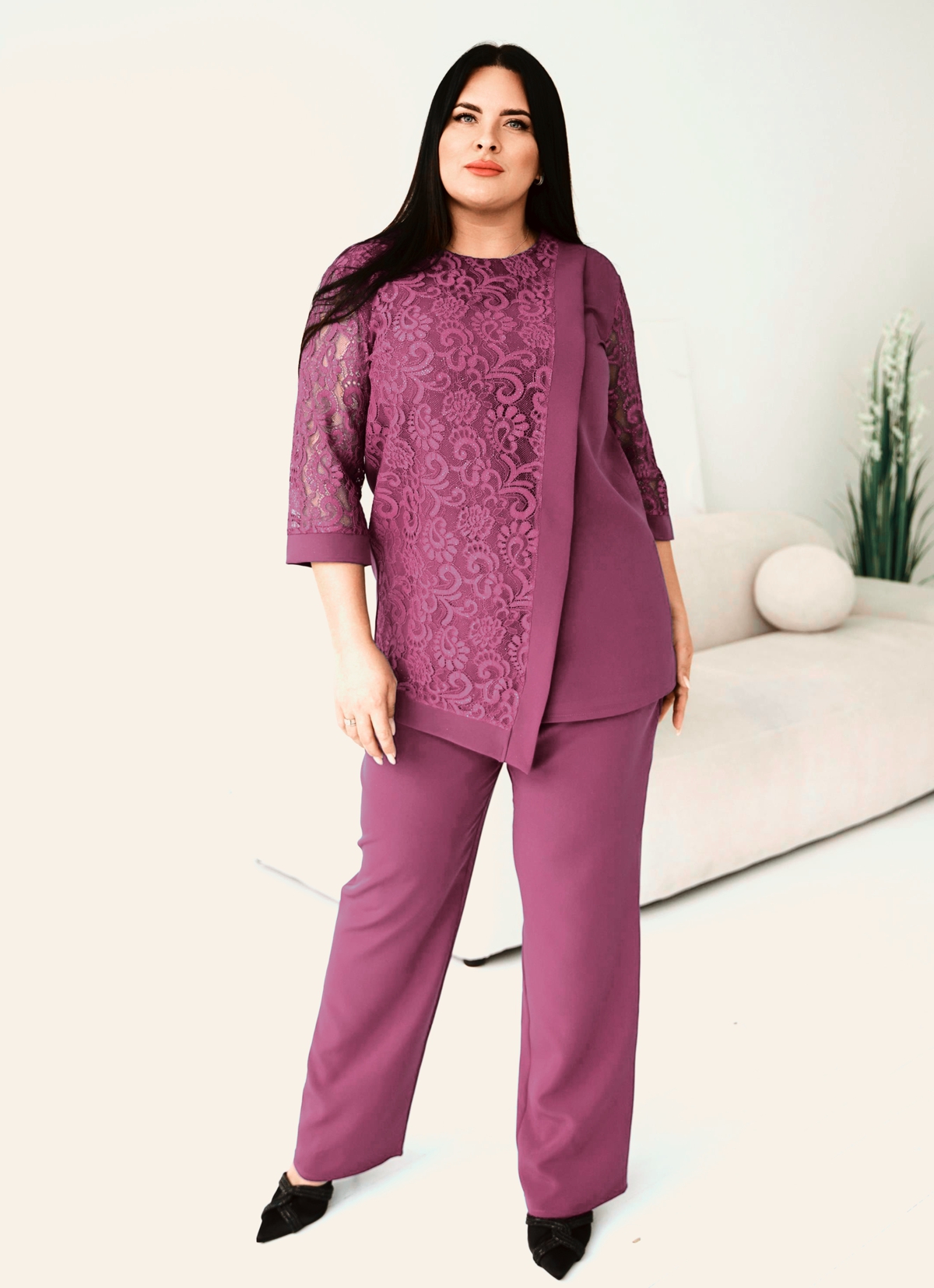 Бренд "Mega-Moda", представляет брючный костюм женский нарядный– идеальный наряд для полных женщин, который подчеркнет стиль и элегантность на любом торжестве. Этот брючный вечерний костюм прекрасно подойдет для свадьбы, делая маму жениха или невесты еще более выдающейся. Женская блузка из гипюра прямого силуэта, обеспечивает комфорт и стиль, идеально подходит для создания делового образа на повседневные выходы в офис.