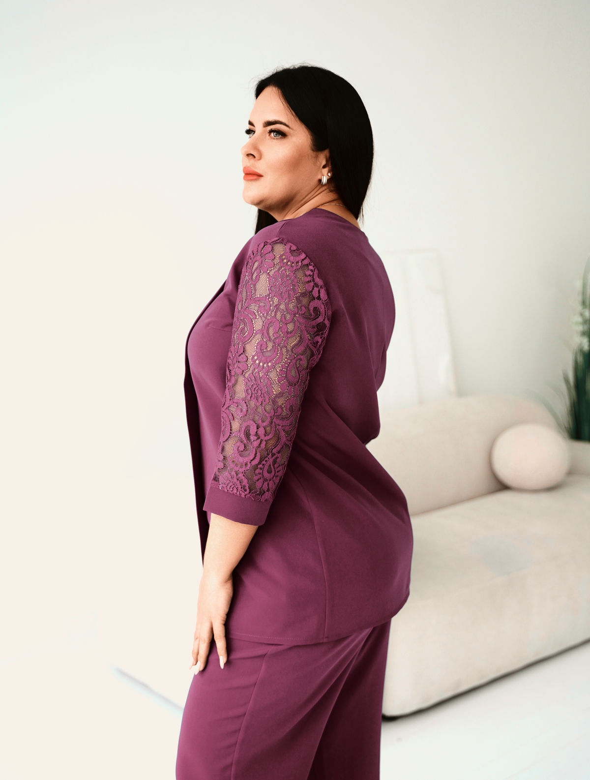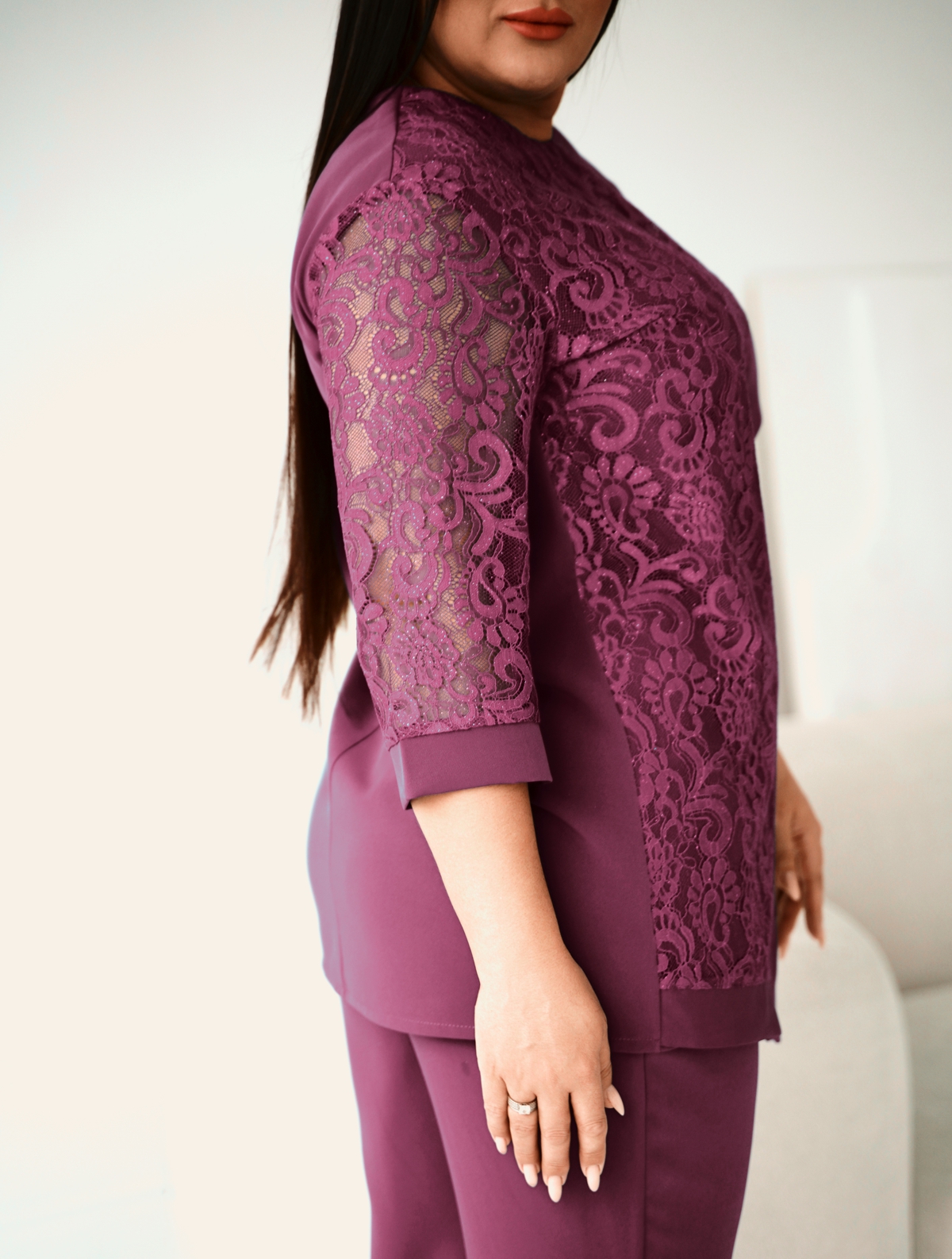 Костюм женский вечерний с брюками сшит из костюмной ткани, отлично подходит для повседневной носки и праздников. Прямые женские брюки с резинкой на талии обеспечивают удобство и комфорт. Блузка из гипюра скроет недостатки фигуры и подчеркнет индивидуальность, а прямая модель подойдет для полной комплекции. Приобретая костюм гипюровый брючный Plus size, вы добавите элегантности в свой гардероб для любых торжественных случаев.