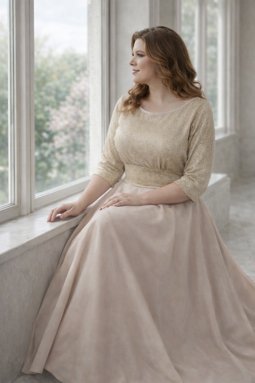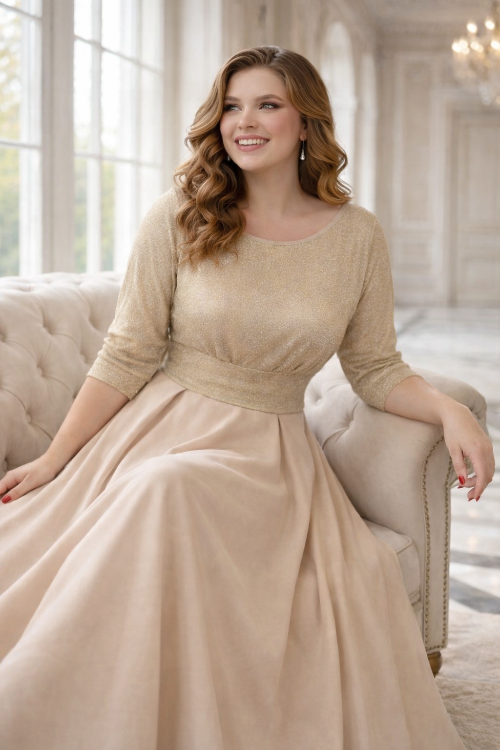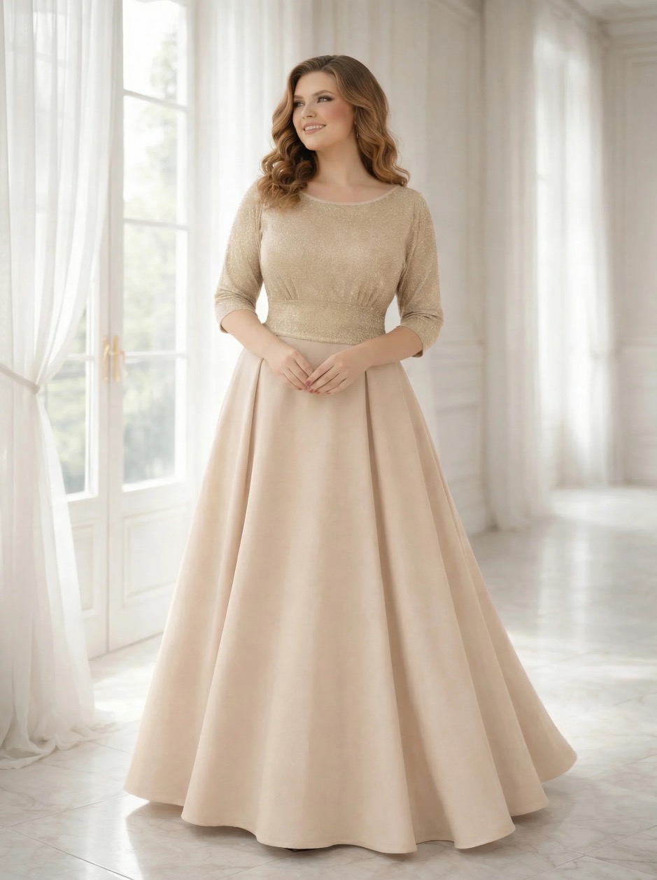 Вечернее платье большого размера для женщин — стильная модель для особых случаев. Верх выполнен из мягкого трикотажа с люрексом, который красиво переливается при искусственном и дневном освещении, придавая изысканность образу. Юбка сшита из качественной костюмной ткани, она держит форму и создает плавный силуэт, визуально вытягивает фигуру и делает образ стройнее. Длинное праздничное платье идет в комплекте с поясом, подчеркивая линию талии и корректирует фигуру.