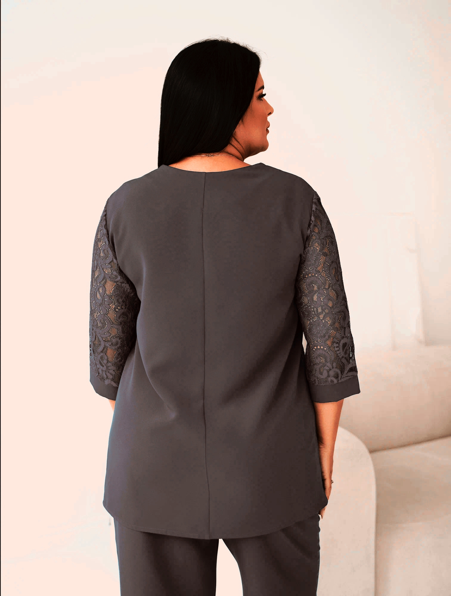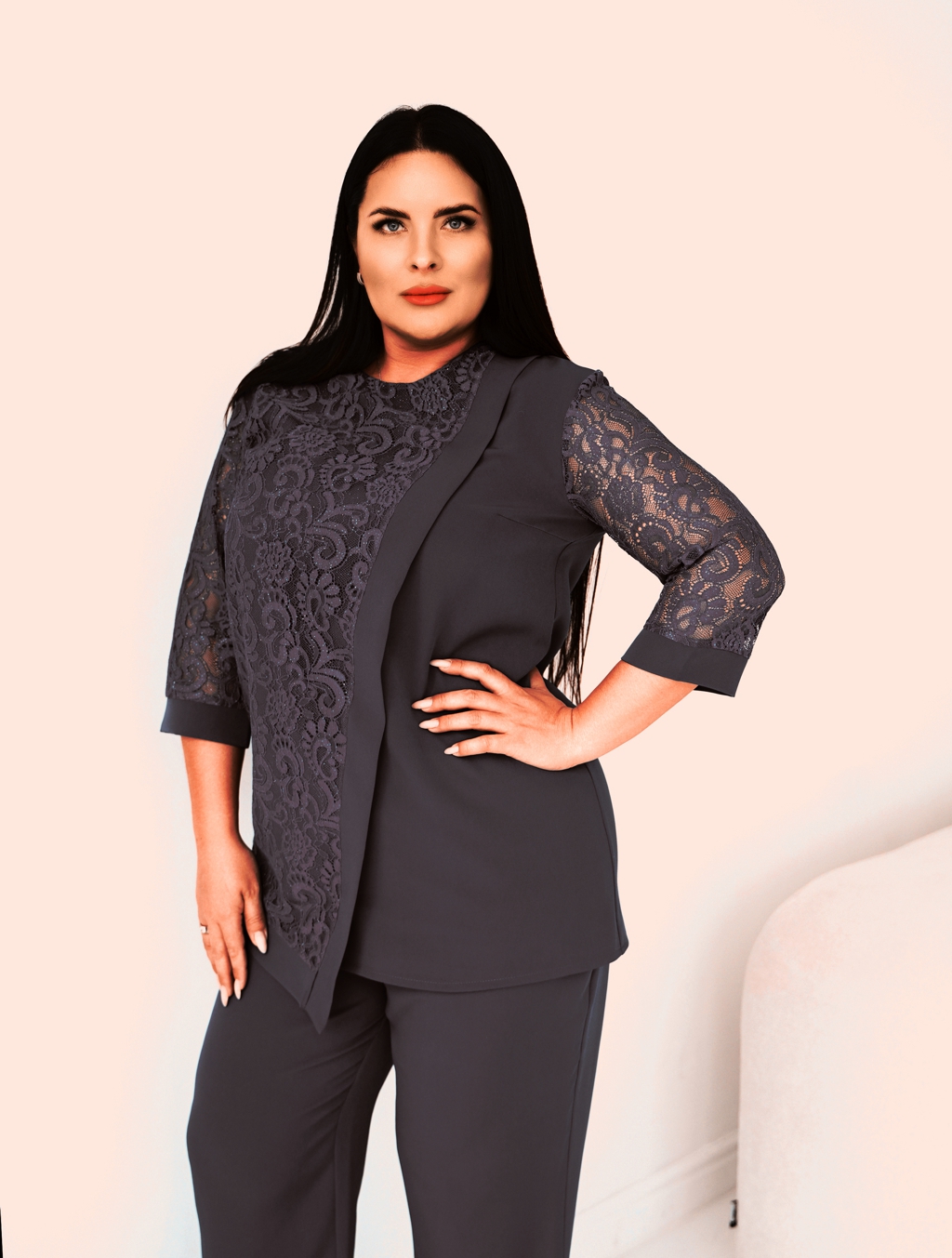 Бренд "Mega-Moda", представляет брючный костюм женский нарядный– идеальный наряд для полных женщин, который подчеркнет стиль и элегантность на любом торжестве. Этот брючный вечерний костюм прекрасно подойдет для свадьбы, делая маму жениха или невесты еще более выдающейся. Женская блузка из гипюра прямого силуэта, обеспечивает комфорт и стиль, идеально подходит для создания делового образа на повседневные выходы в офис.